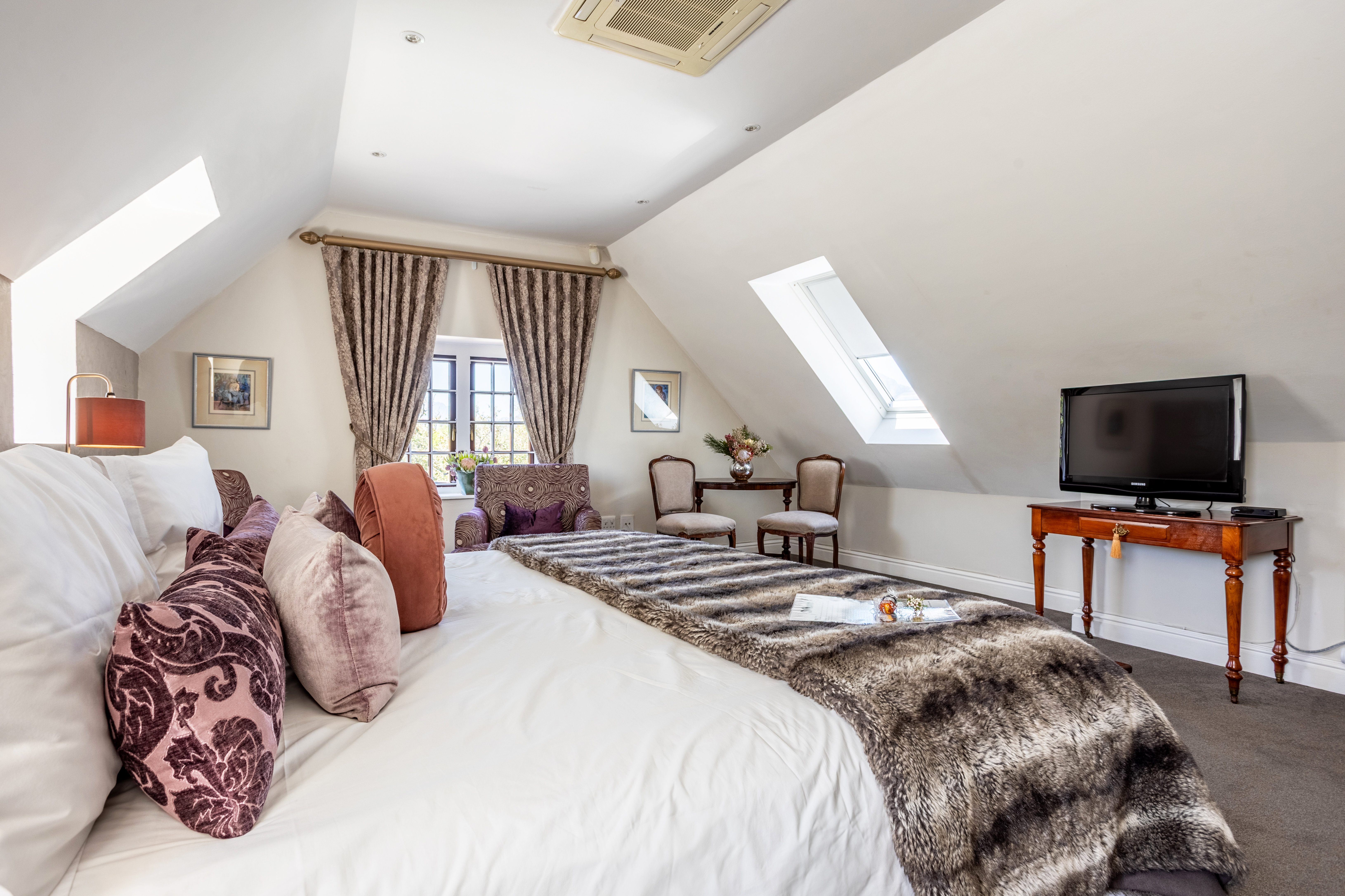 All Deluxe Rooms are spacious suites with living room areas. Two are situated on the top floor with spectacular mountain / garden views. One of the rooms are situated on the Ground floor with its own entrance onto the verandah, overlooking the pool. The in-room amenities include satellite TV, courtesy-bar, a safe, a tea / coffee station with selection of teas and an Espresso machine. Each room offers a modern en-suite bathroom equipped with hairdryer, international razor plugs and exquisite bath amenities.